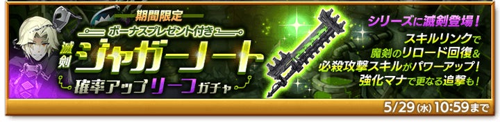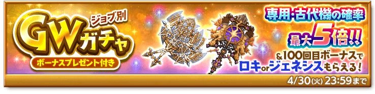 - ジョブ別GWガチャや滅剣ジャガーノート確率アップリーフガチャなど盛りだくさん