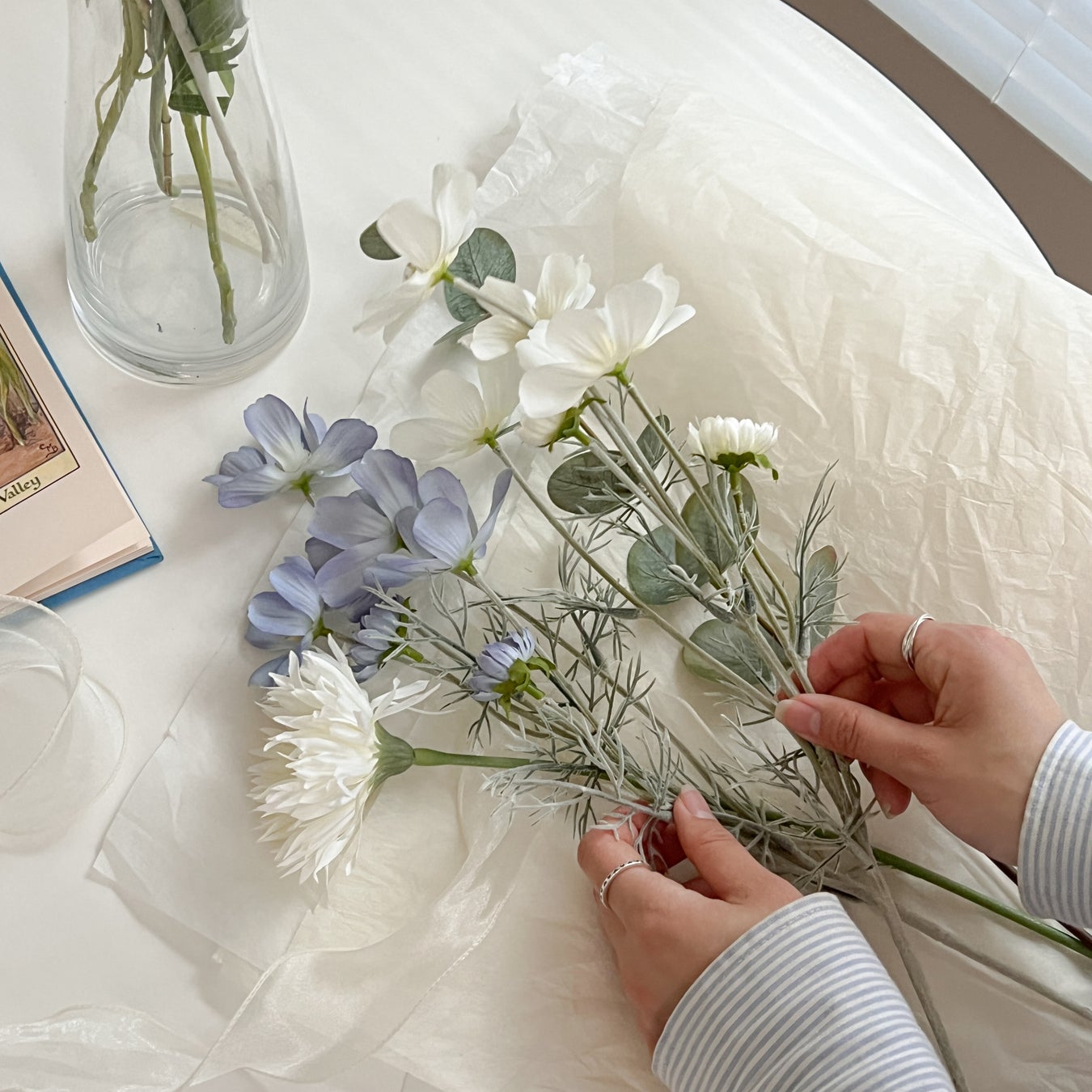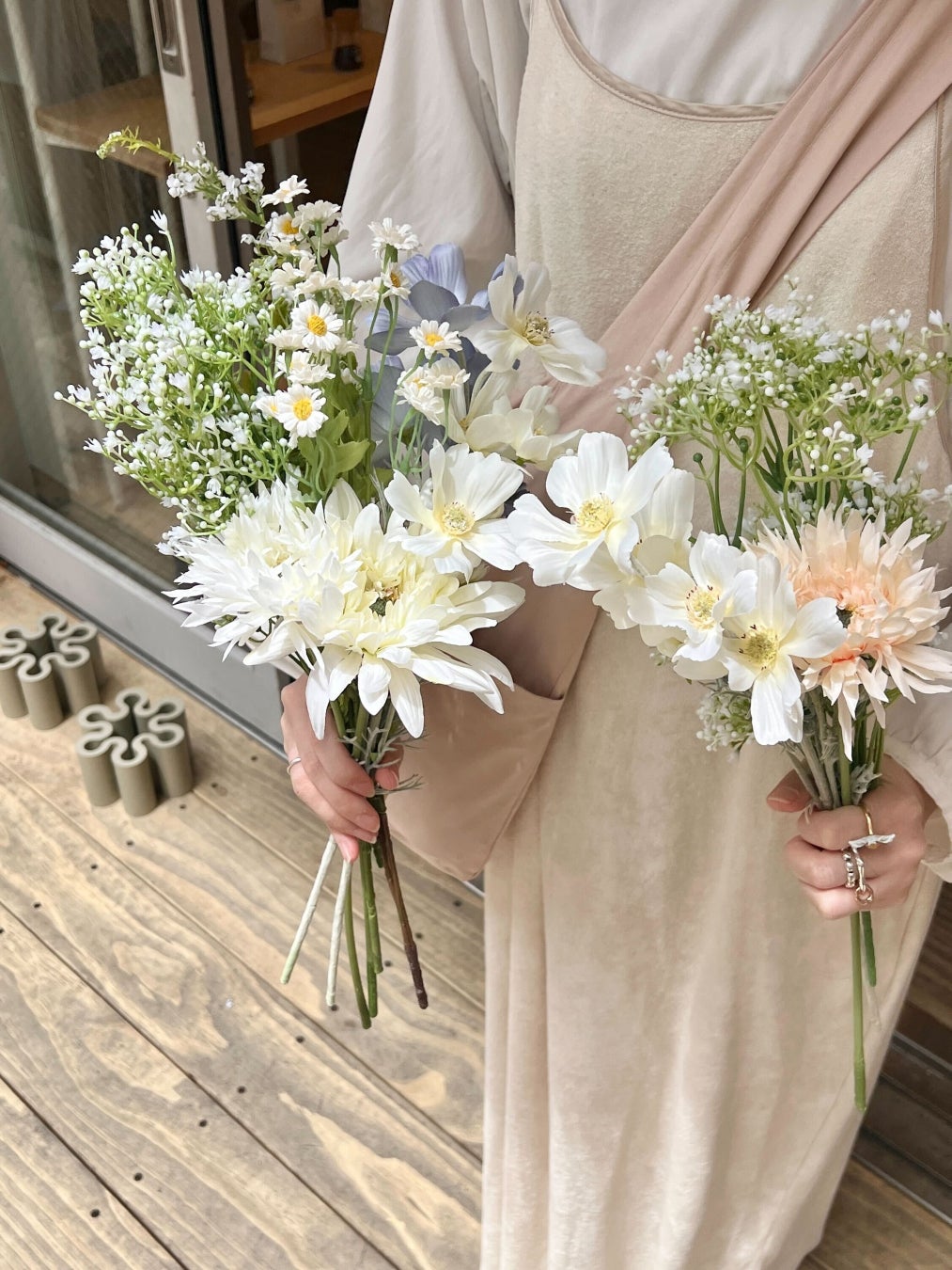 - 造花を選んでブーケ作成、価格は3本から5,000円まで
