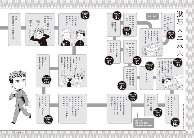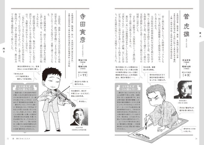 マンガ家の香日ゆら氏がイラストやマンガで漱石を徹底解説し、漱石の生涯や作品、ゆかりの地、記念館、漱石を取り巻く人々など新たな情報が満載です。