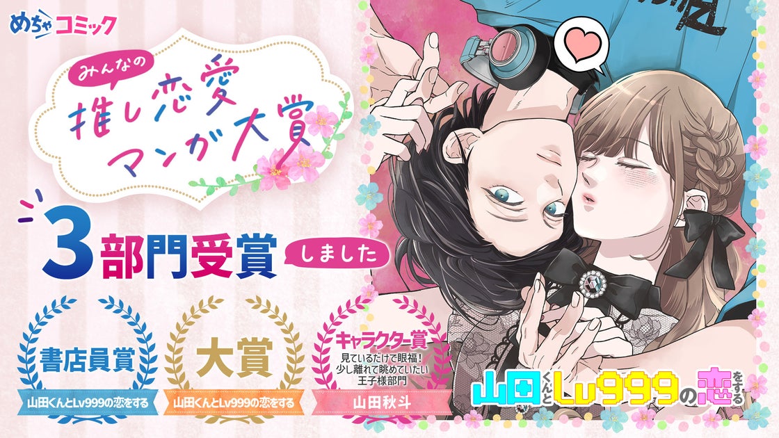 コミックスマートが展開するマンガアプリ「GANMA!」で連載中の『山田くんとLv999の恋をする』がめちゃコミックの「第3回 みんなの推し恋愛マンガ大賞」で大賞、書店員賞、キャラクター賞を受賞しました。
