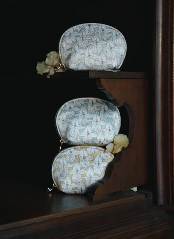 リリー柄のサテンポーチやマルチトレイ、リリーエンブロイダリー日傘などがラインナップされています。