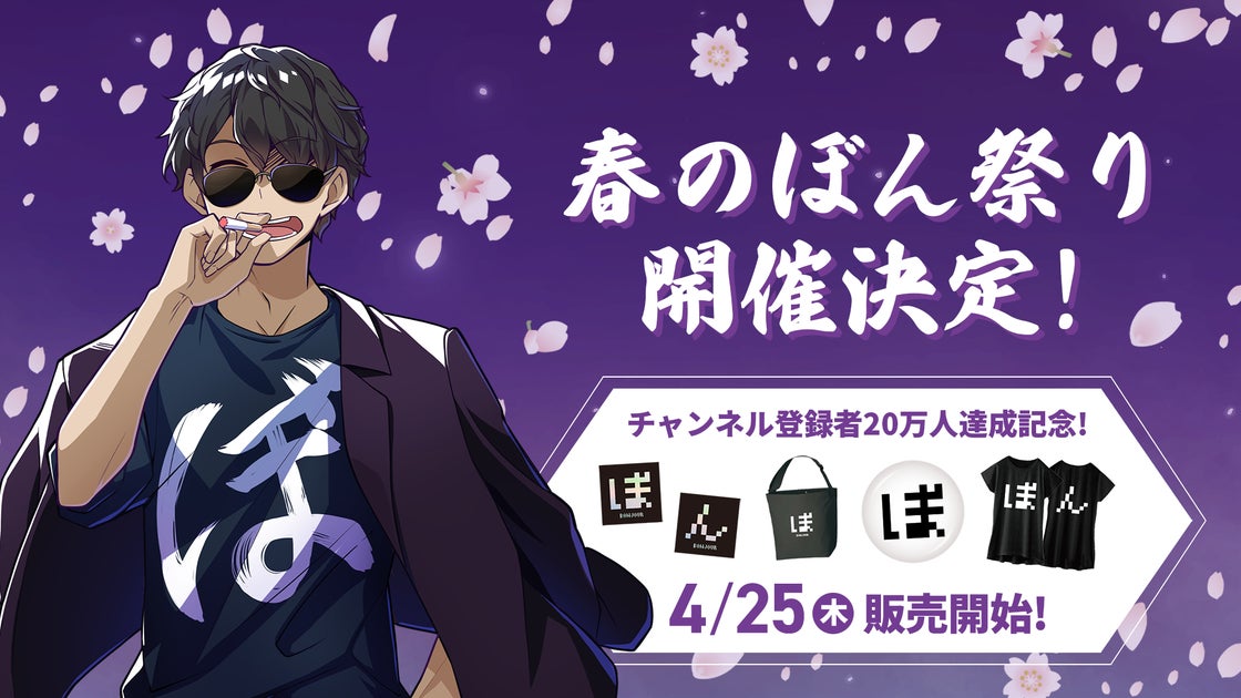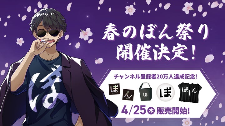 株式会社ドズルは、ゲーム実況グループ「ドズル社」のメンバーぼんじゅうるのYouTubeチャンネル登録者数が20万人を突破したことを記念し、2024年4月25日から『春のぼん祭り』を開催します。