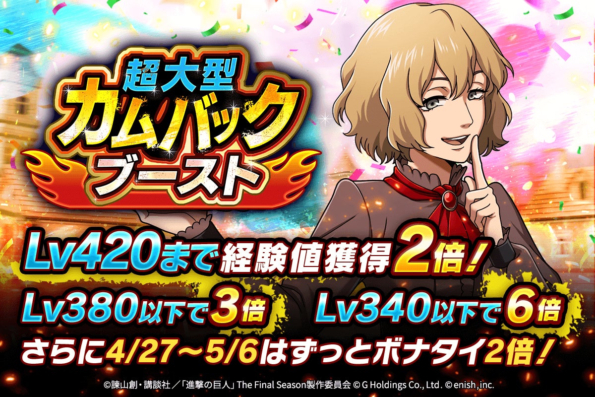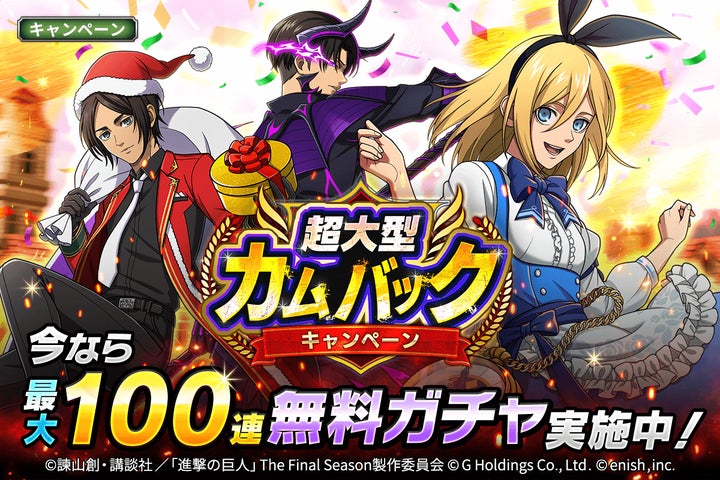 - 進撃の巨人Brave Order公式サイトで「超大型カムバックキャンペーン」開催中