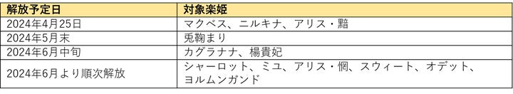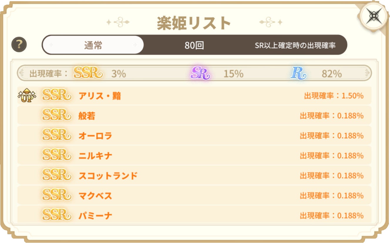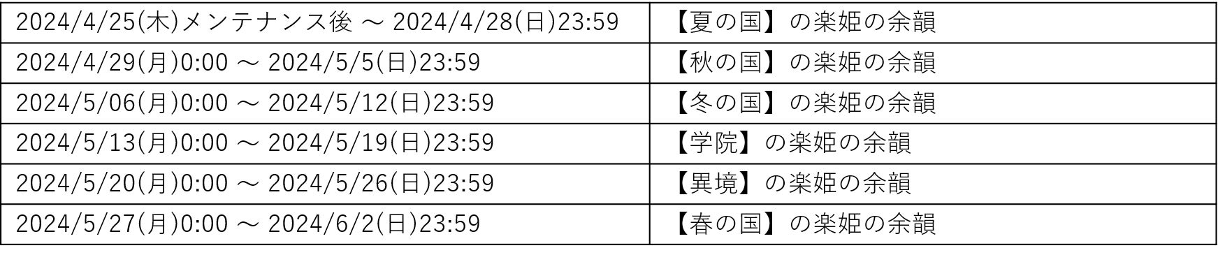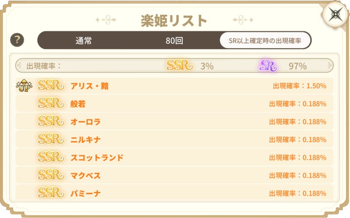 • 4月25日の大型アップデートでSSR楽姫の確率アップや新要素追加