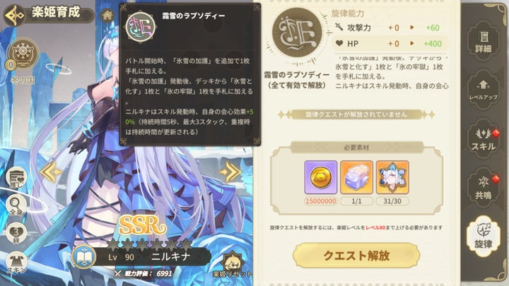 4月25日の大型アップデートでは、SSR楽姫の出現率が上昇し、新要素が追加されました。