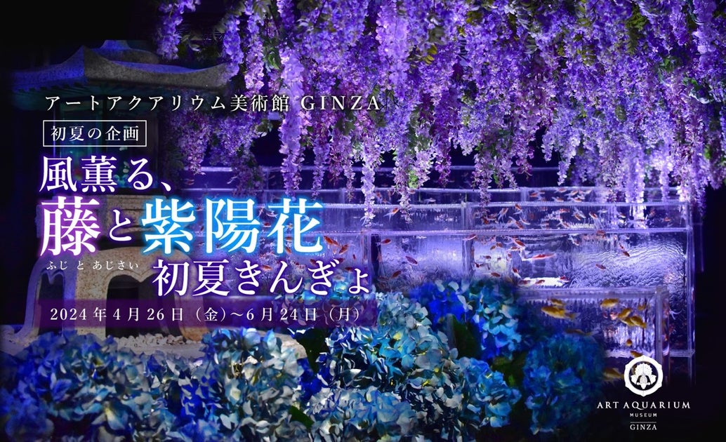 アートアクアリウム美術館 GINZAでは、4月26日から初夏企画「風薫る、藤と紫陽花 初夏きんぎょ」がスタートします。