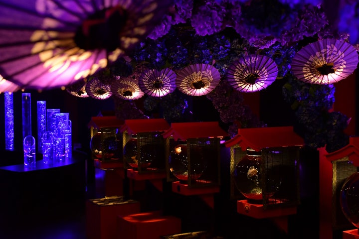 金魚の回廊や金魚の滝など、藤と紫陽花のカラーに彩られたアートアクアリウム作品も必見です。