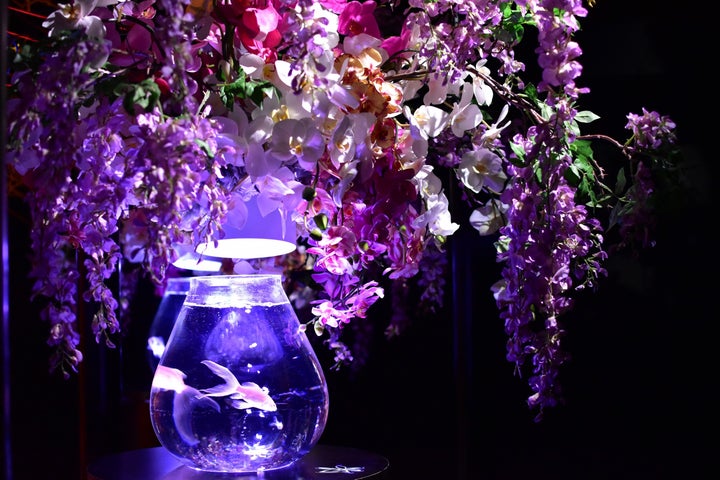 藤と紫陽花をテーマにした“艶”空間で、金魚たちが優雅に泳ぐ幻想美が楽しめます。