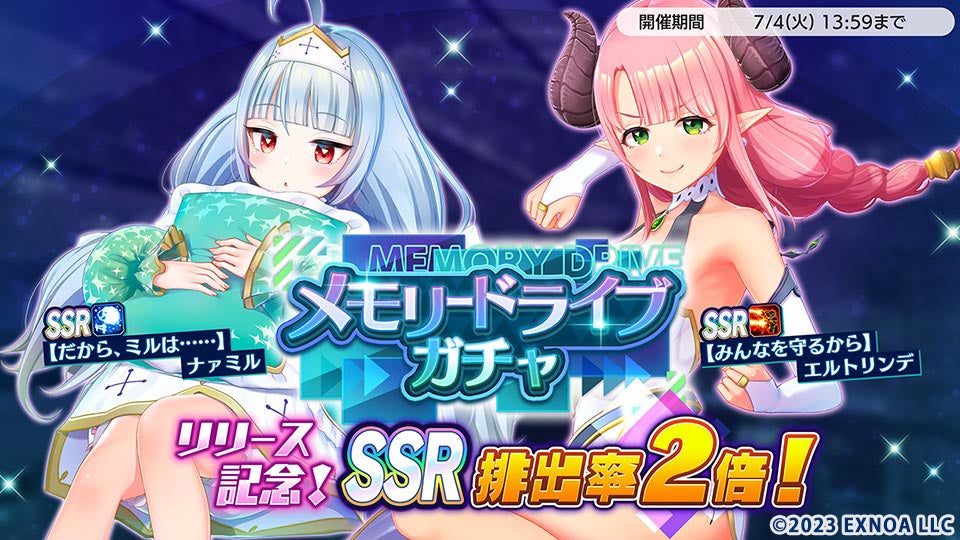 - リリース記念キャンペーンでメモリードライブガチャSSR排出率2倍やビットダイヤ無償配布