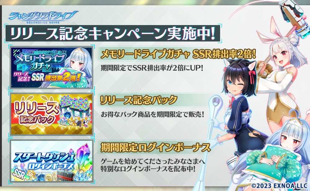 リリース記念キャンペーンでは、メモリードライブガチャSSR排出率2倍やビットダイヤ無償配布などが実施される。