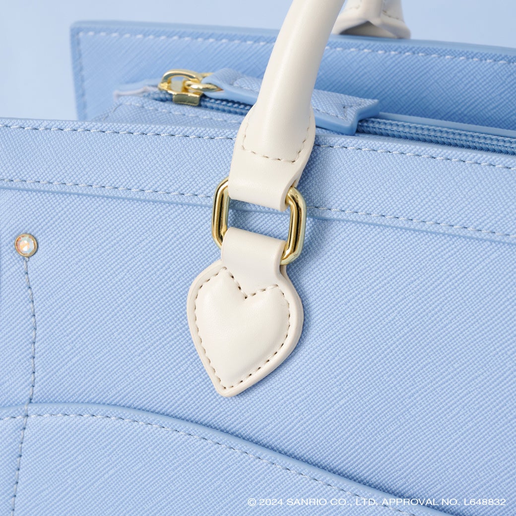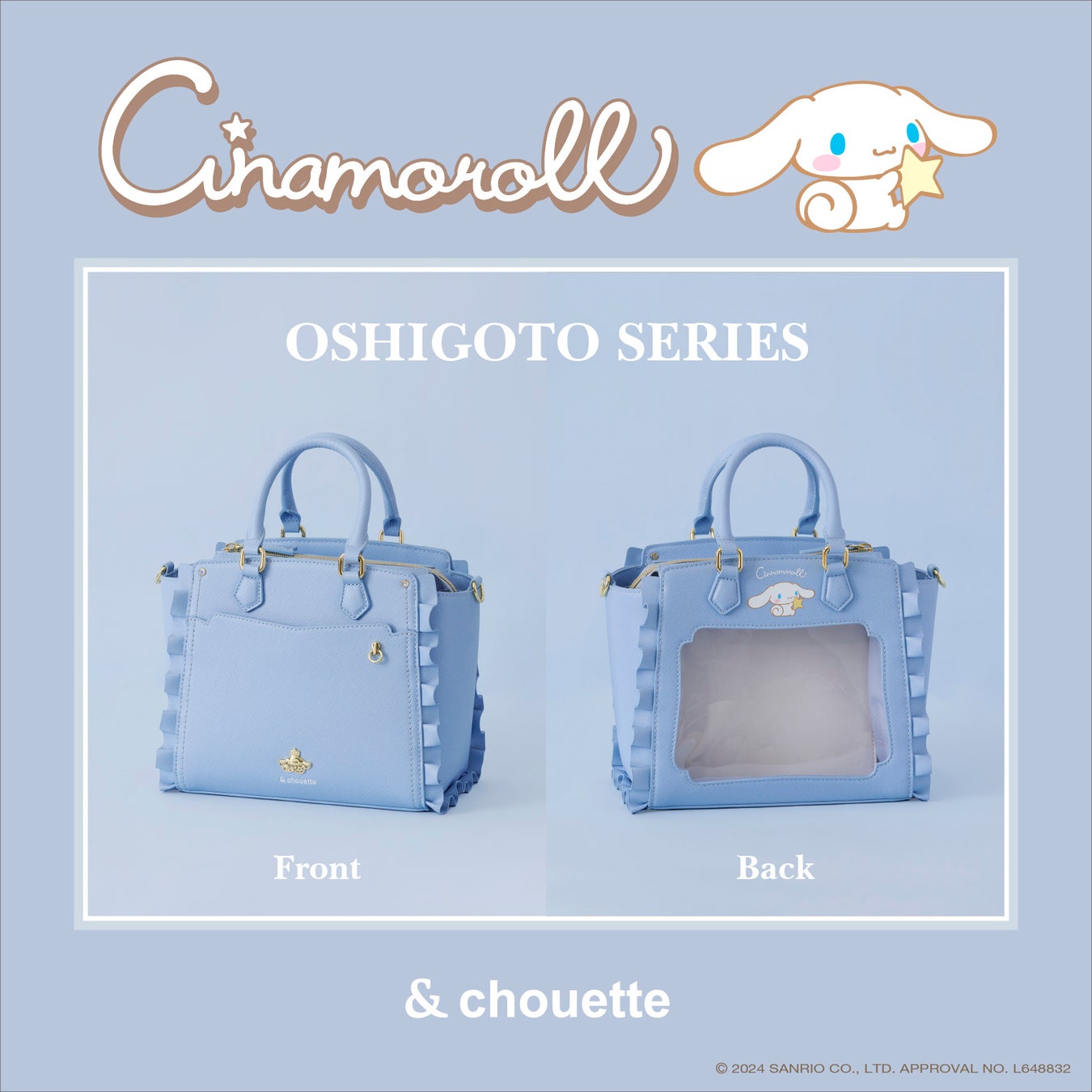 また、シナモロールのクリアポケット付きトートやバイカラーハンドルトート、フリル財布、パスケース&ポーチチャームもラインナップされています。