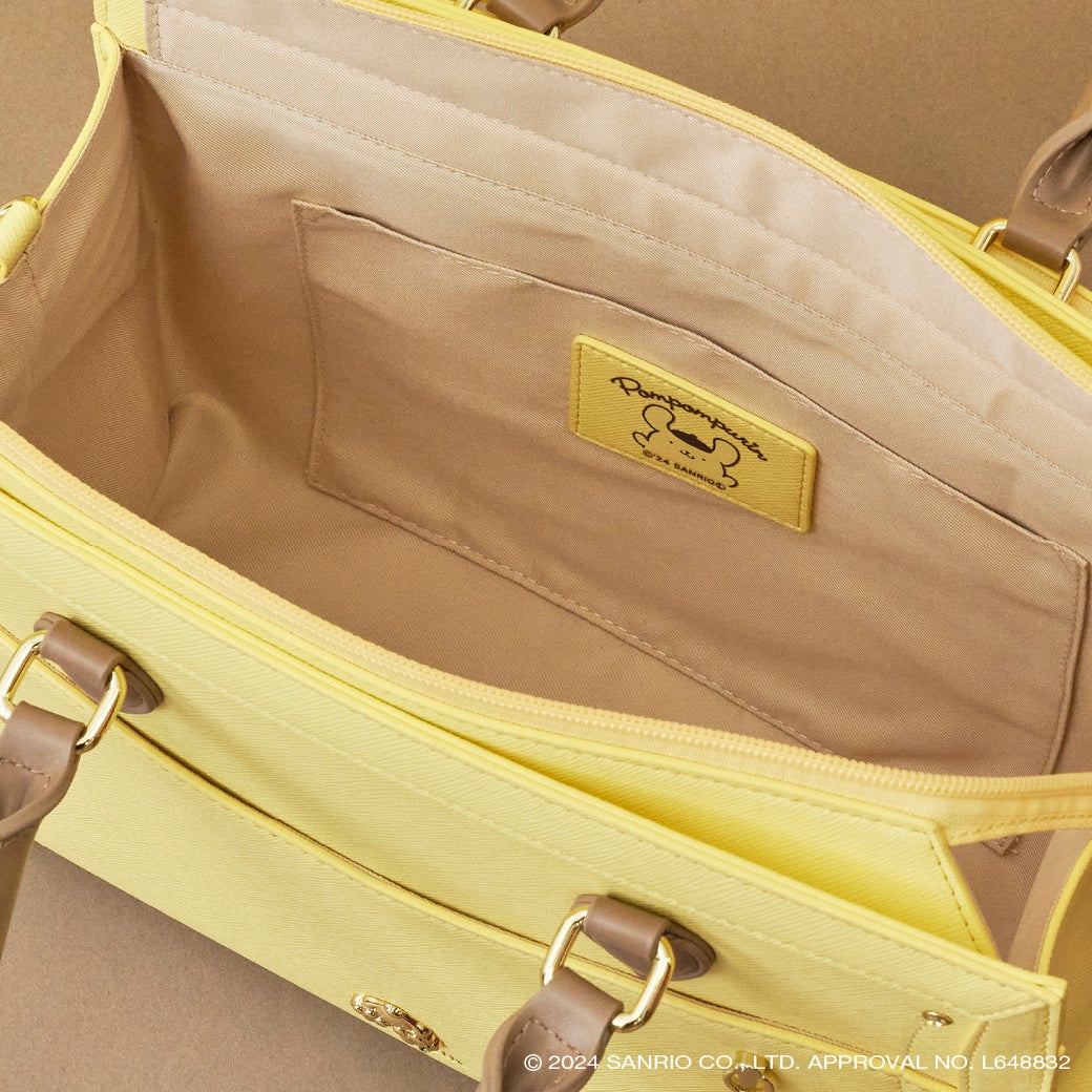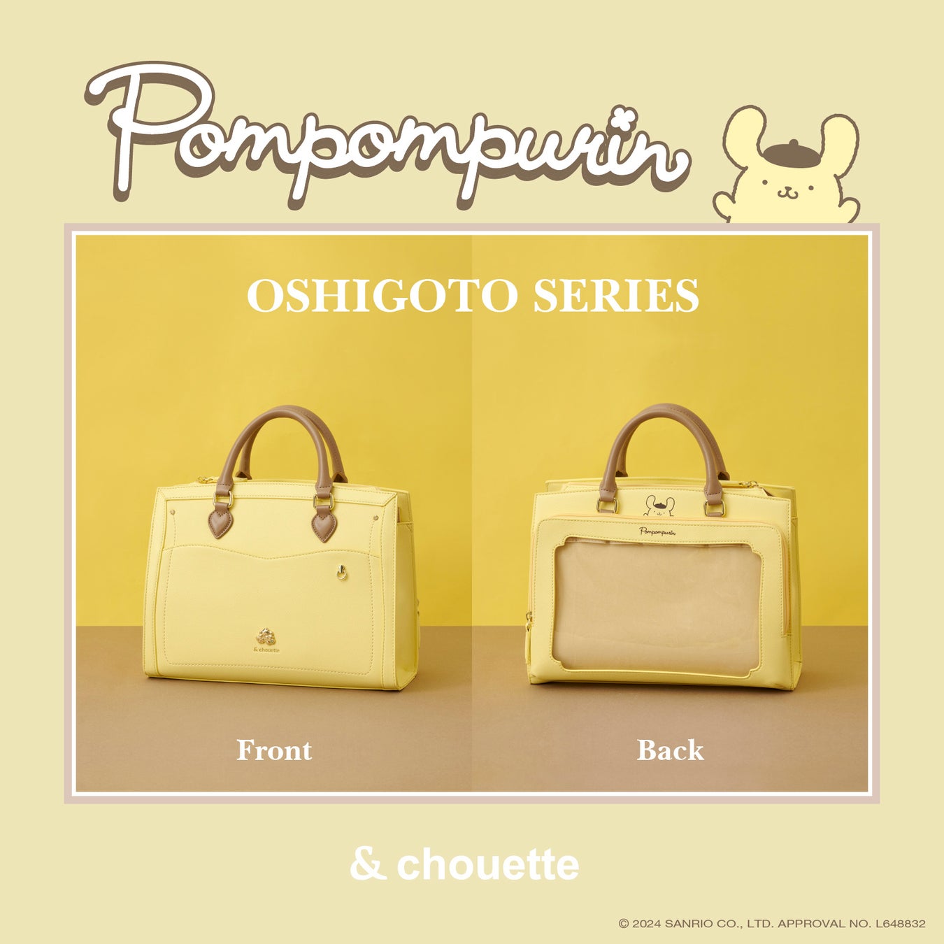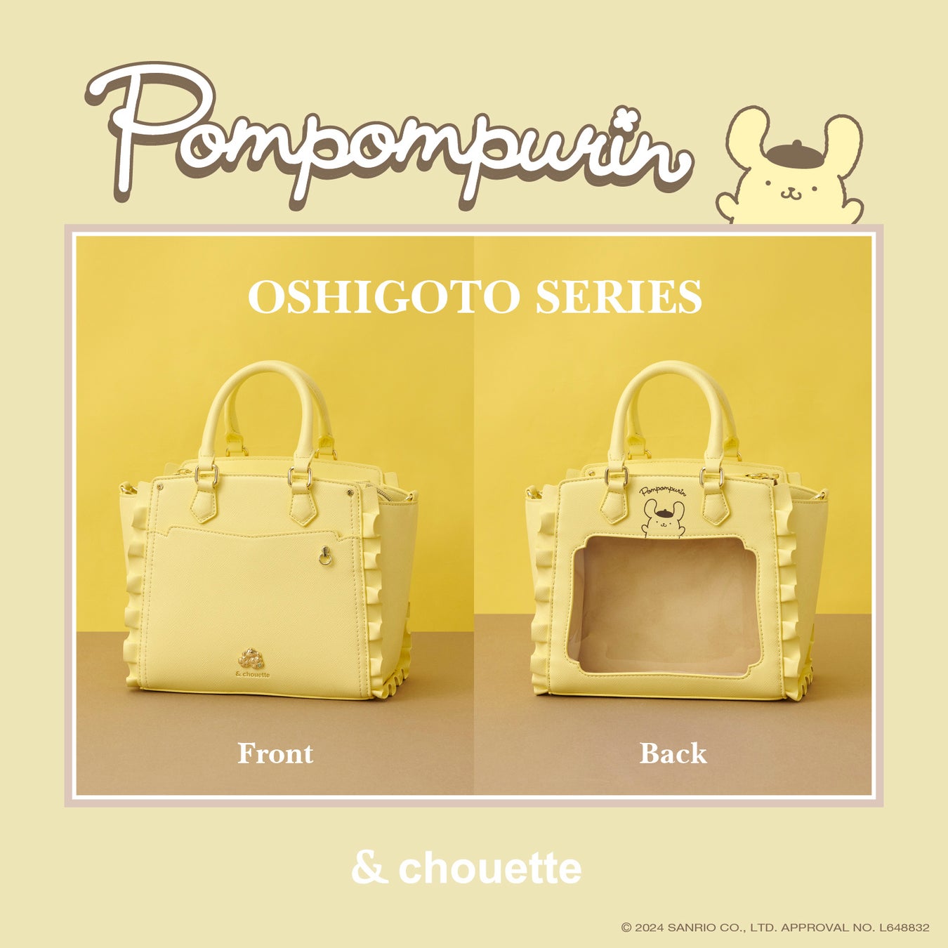 ポムポムプリンの金具付きトートやバイカラーハンドルトート、フリル財布、パスケース&ポーチチャームなどが登場しています。