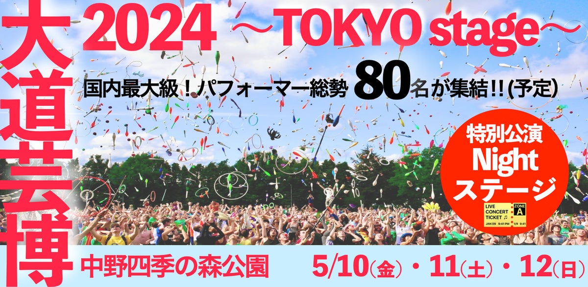 - 2024年5月10日から3日間、中野四季の森公園で大道芸博2024開催