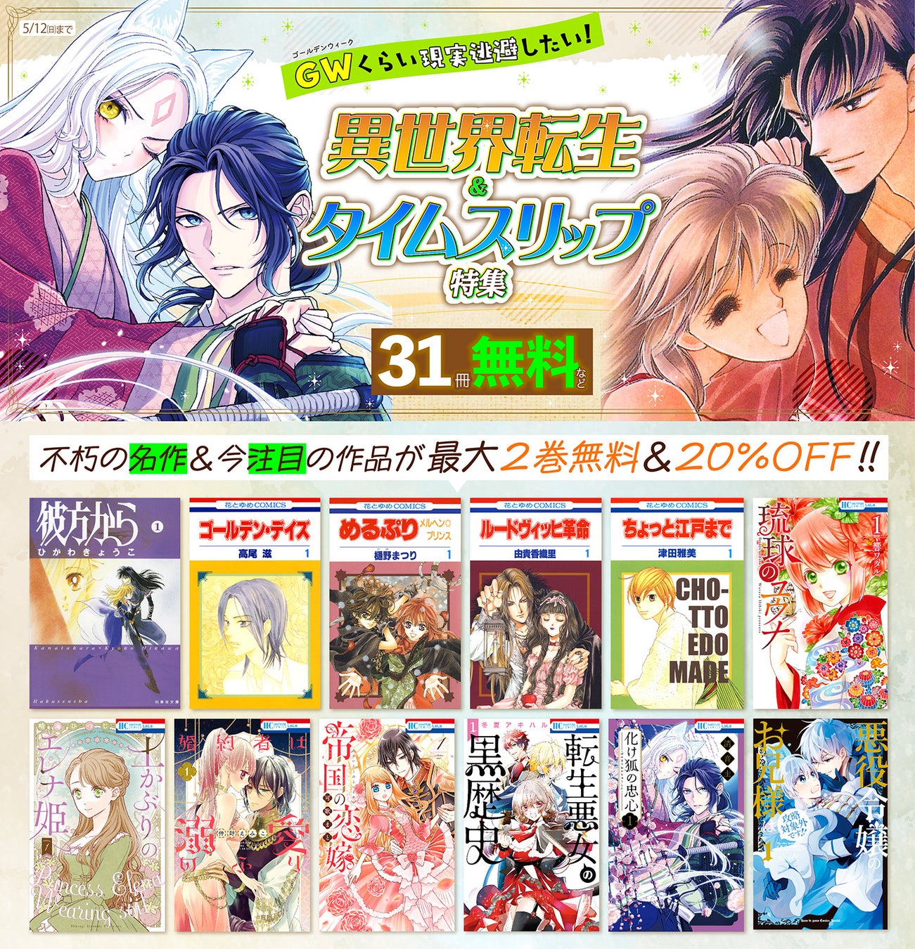 大人気連載の最新話は雑誌でチェック!「転生悪女の黒歴史」がアニメ化決定し、無料配信も!名作タイムスリップ&転生作品で時代を超えて涙する感動を♪ 4/26~5/12は大正ロマンや西洋ファンタジー、異世界転生マンガのラインナップが充実!GWにマンガで旅しませんか?異世界転生&タイムスリップ特集が白泉社e-netや主要電子書店で開催中!メディア関係者向けの情報も掲載。
