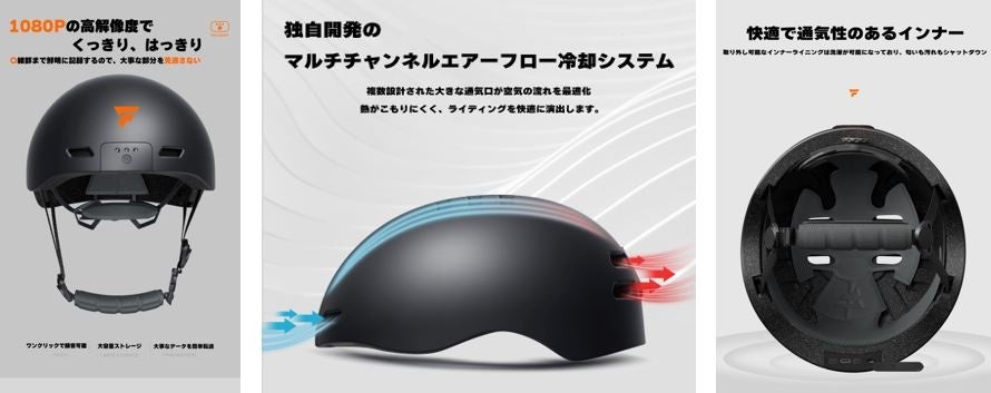 ドラレコ付き自転車ヘルメット新商品「FOXWEAR V6」で記録された映像は、1080Pの高解像度ではっきり、細部まで鮮明に記録するので大事な部分を見逃さないのが特徴。また、複数設計された大きな通気口が空気の流れを最適化。熱がこもりにくく、ライディングを快適に演出する。取り外し可能なインナーライニングは洗濯が可能になり、匂いも汚れもシャットダウンできる。