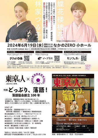 - 2024年6月19日になかのZERO 小ホールで『蝶花楼桃花 林家つる子 二人会』開催