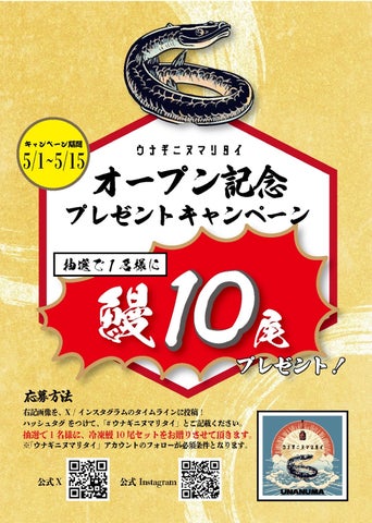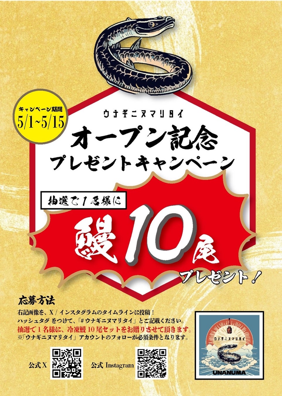 • 2024年5月1日に大阪岸和田に「ウナギニヌマリタイ」がオープン