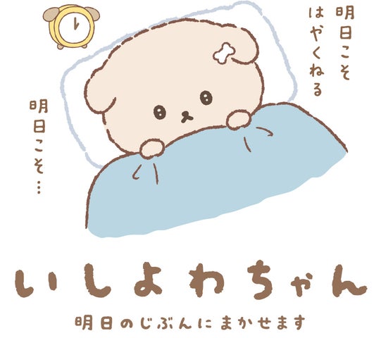 - いしよわちゃんは三日坊主のイヌで、「明日こそ」と口癖