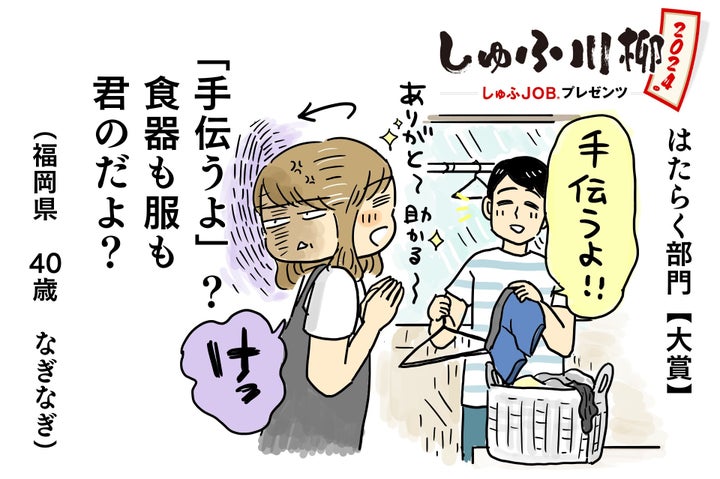 大賞受賞作品は「手伝うよ」? 食器も服も 君のだよ?」という川柳でした。