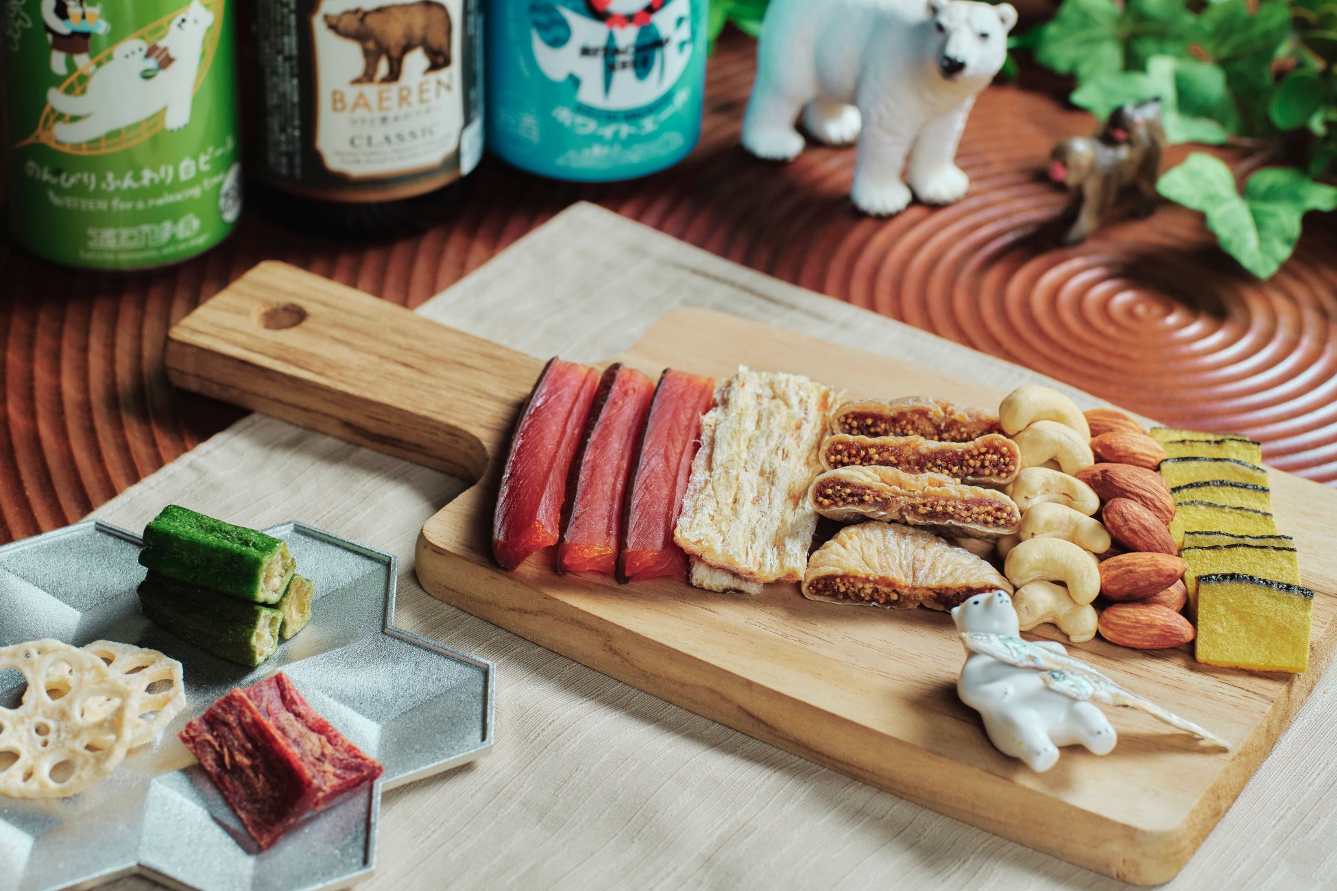 クラフトビールは動物デザインで週替わり販売され、おつまみも充実しています。
