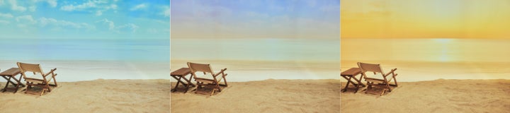 時間帯によってビーチの景色が変化し、波の音や三線の音色がBGMとして流れます。