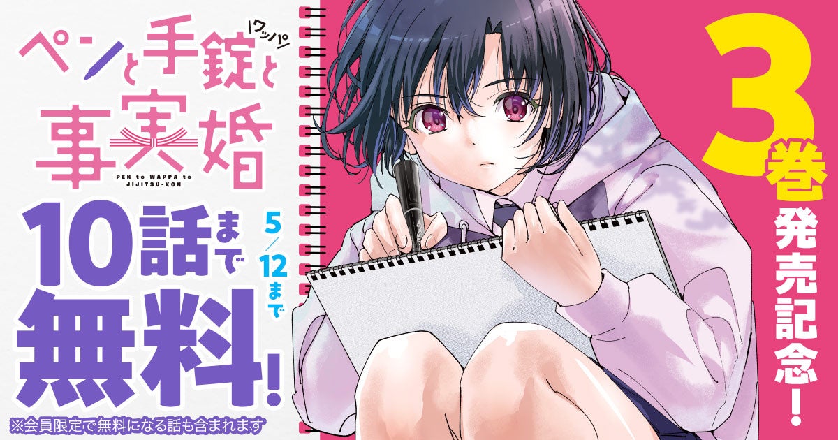 - 「ペンと手錠と事実婚」最新3巻発売記念で10話無料キャンペーン