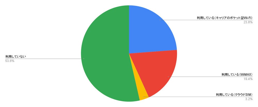 ポケット型Wi-Fiを利用している方も約半数の方が、外でのWi-Fiの利用を目的としていることがわかりました。