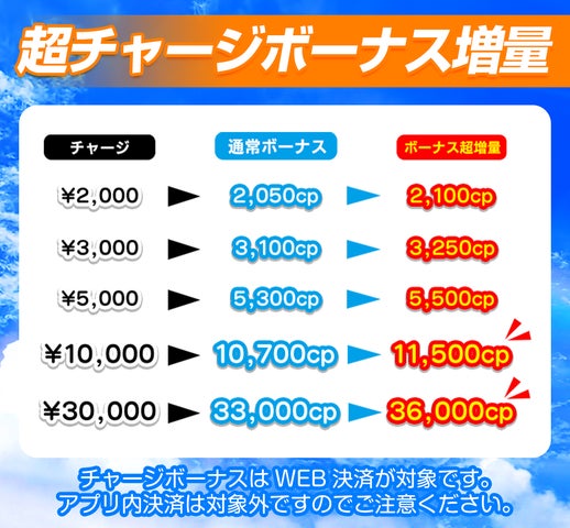 期間中は超チャージボーナスやログインボーナスなどお得な特典が満載です。