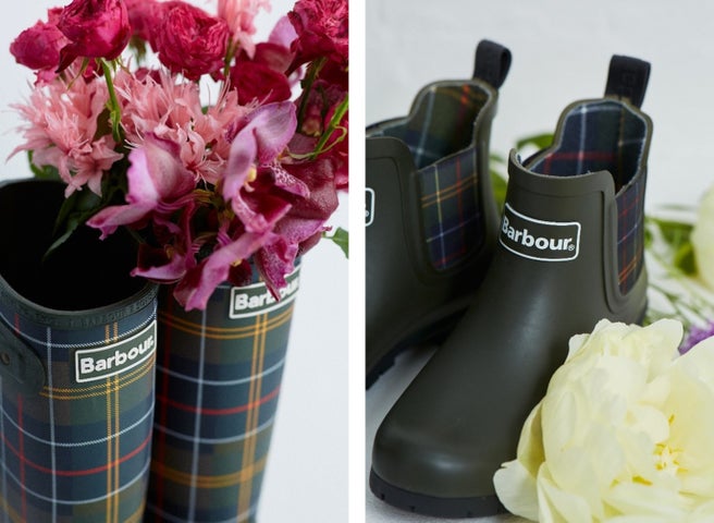 バブアーのレインアイテムが揃い、英国らしいデザインのレインポンチョやレインブーツが登場します。