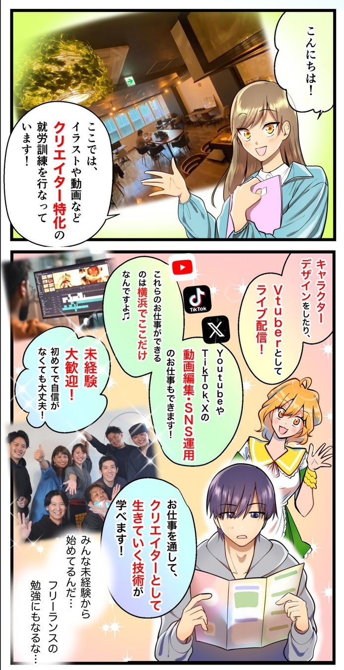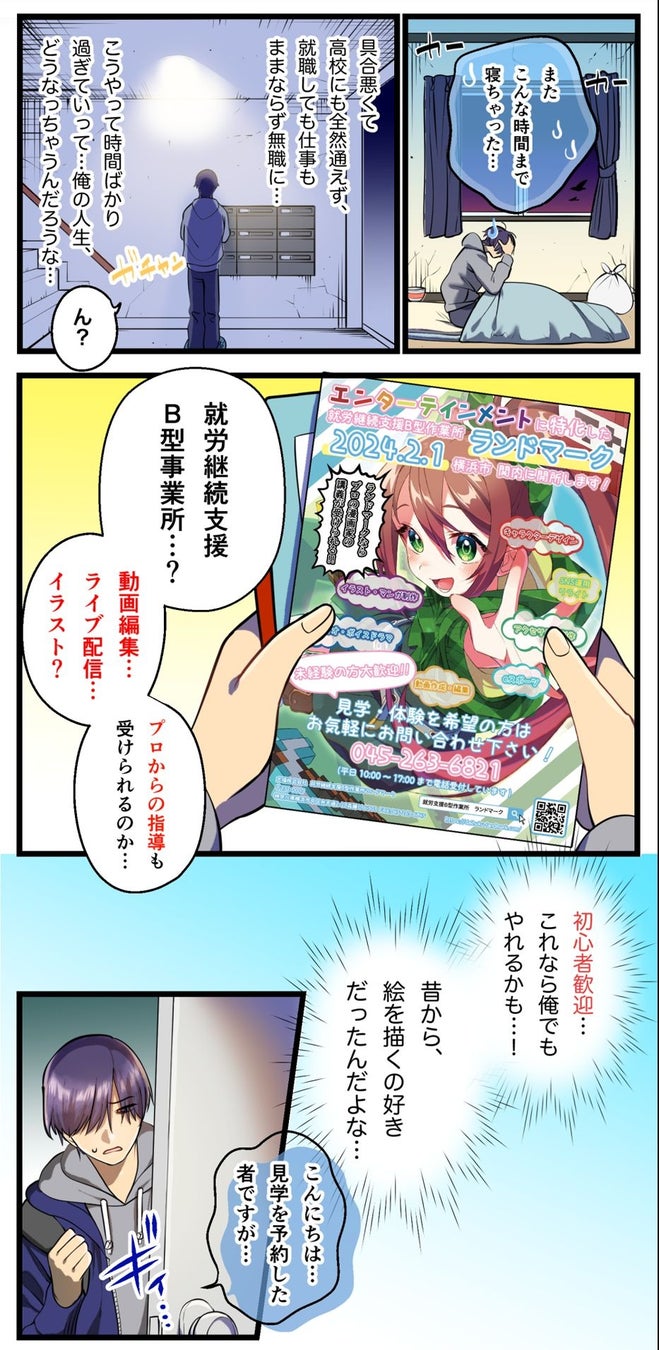 ホームページ制作には、就労者が参加し、共感を呼ぶエピソードや漫画が制作されています。