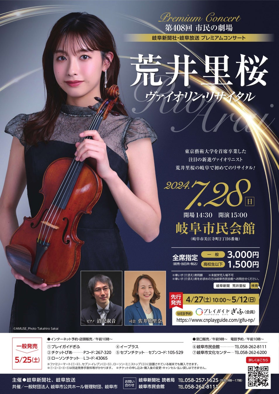 2024年7月28日(日)、岐阜市民会館で行われる荒井里桜さんのリサイタルの公演情報です。