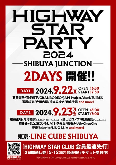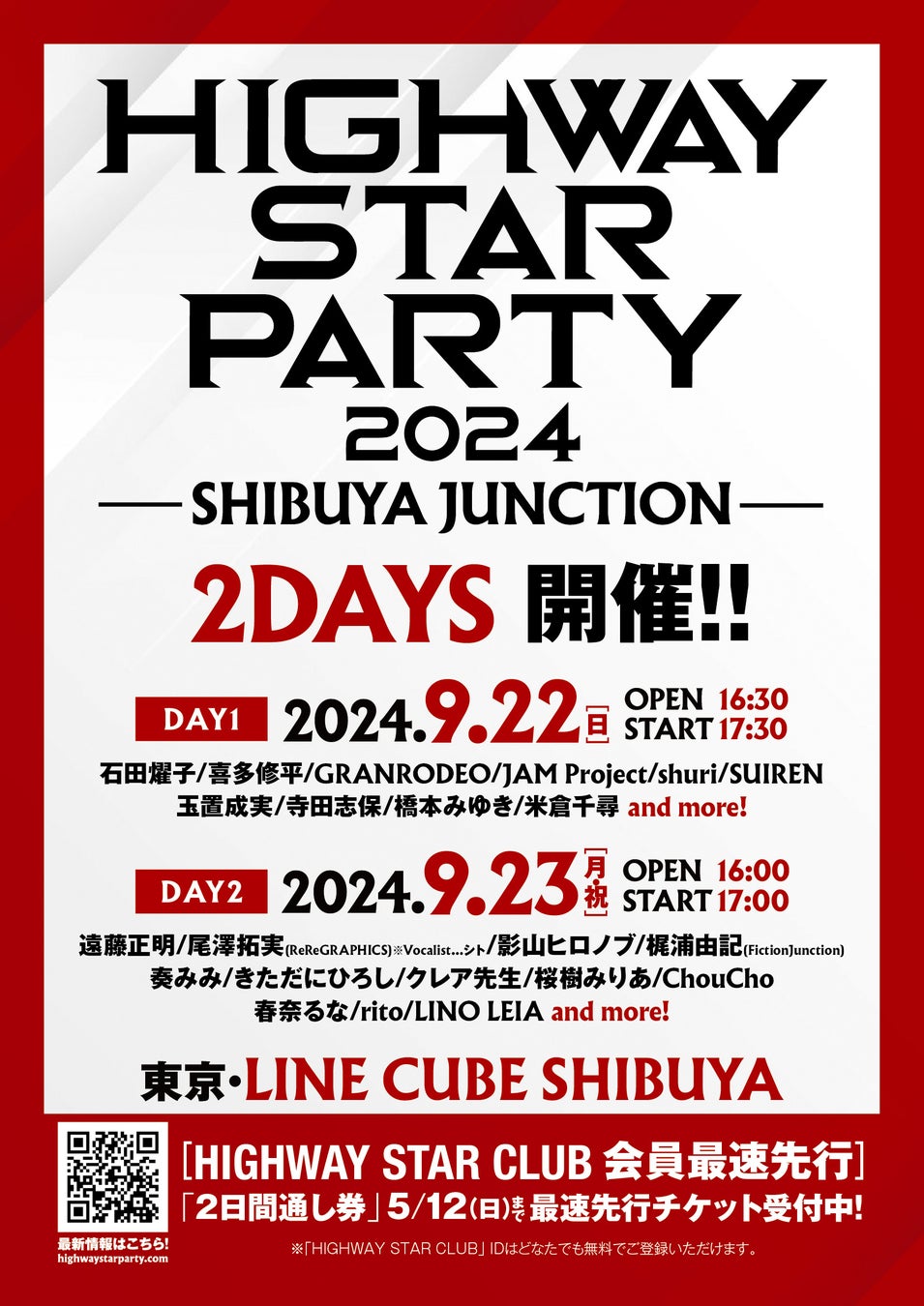 音楽プロダクション・アーティストマネジメント会社「HIGHWAY STAR」主催の「HIGHWAY STAR PARTY 2024」が発表されました。