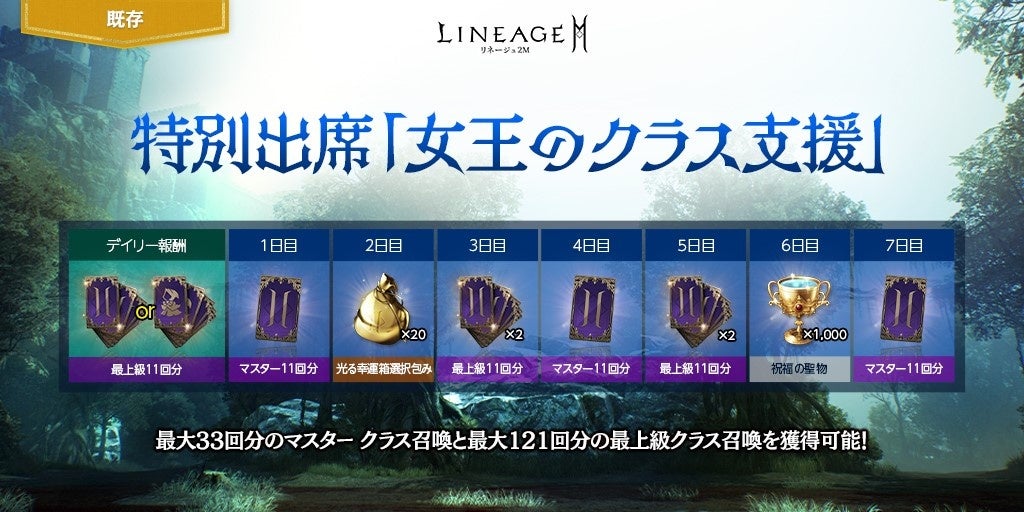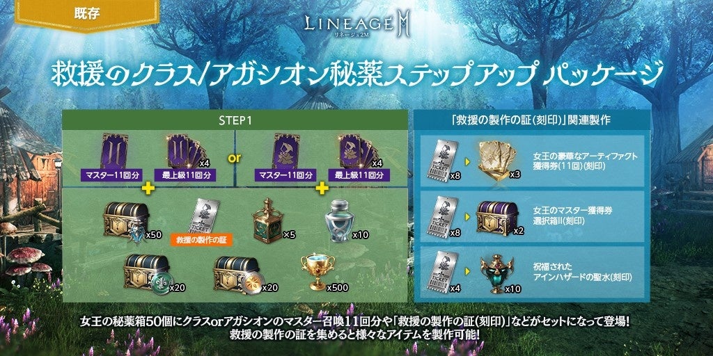 - 「女王のクラス支援」や「救援のクラス/アガシオン秘薬ステップアップパッケージ」も登場
