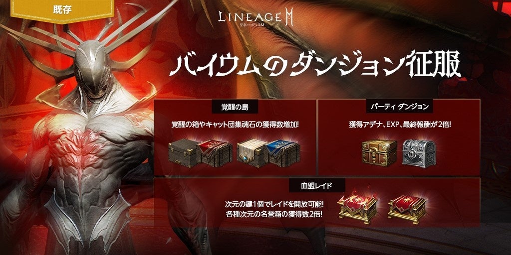 『リネージュ2M』では、アデナで貴重なアイテムを獲得できる「黄金の馬車」が出現し、パーティダンジョンやワールドダンジョン「覚醒の島」で報酬が2倍になるイベントが開催される。