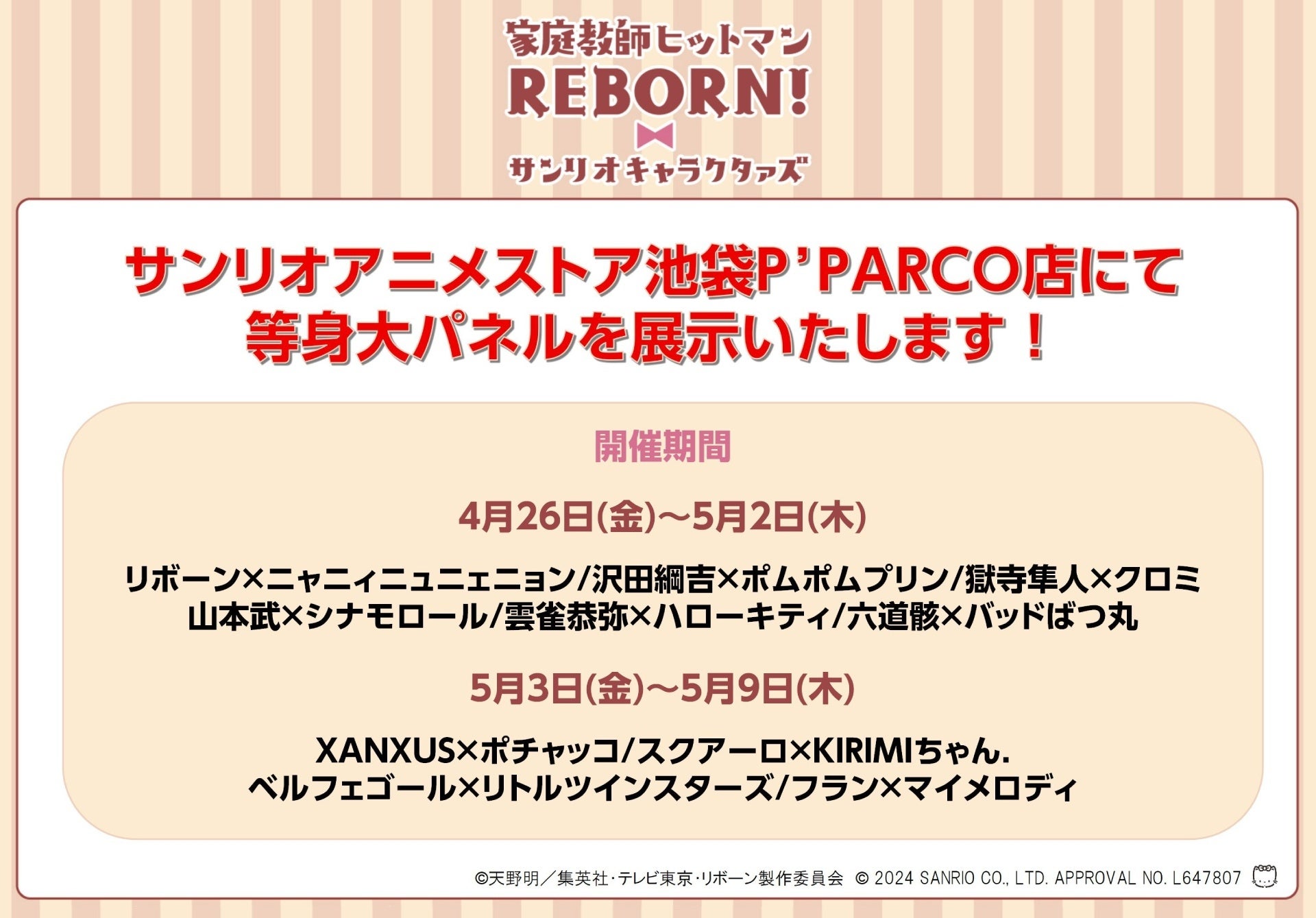 2024年4月26日から5月9日まで、サンリオアニメストア池袋P’PARCO店で「家庭教師ヒットマンREBORN!×サンリオキャラクターズ」のPOP UP SHOPが開催されます。