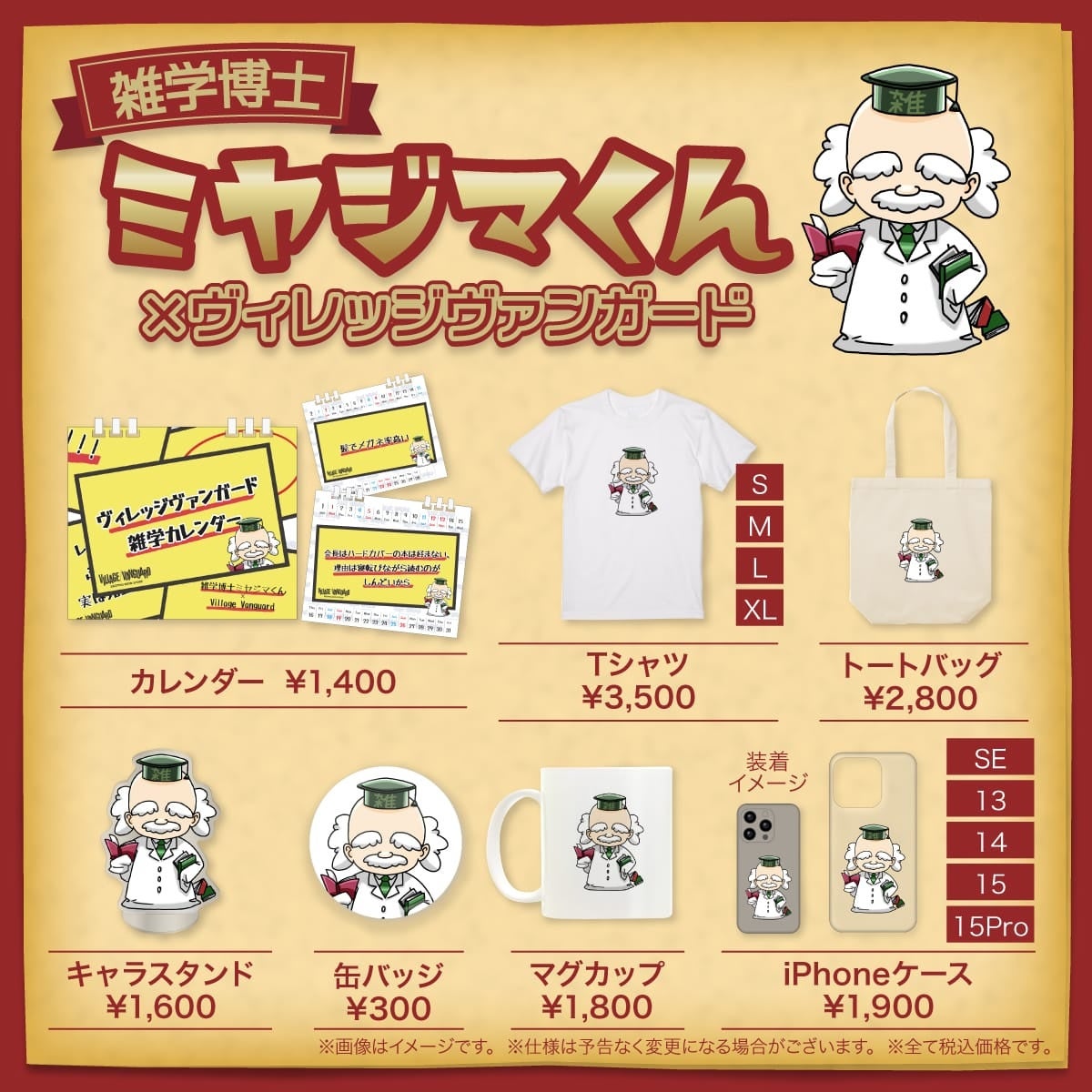 2024年4月26日から、雑学YouTuber「雑学博士ミヤジマくん」とのコラボグッズがヴィレヴァンオンラインストアで販売されます。