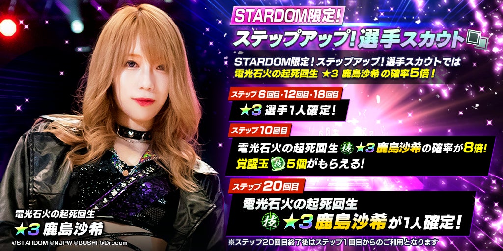 - スターダムから、★3鹿島沙希が初登場!STARDOM限定ステップアップ選手スカウトを開催!