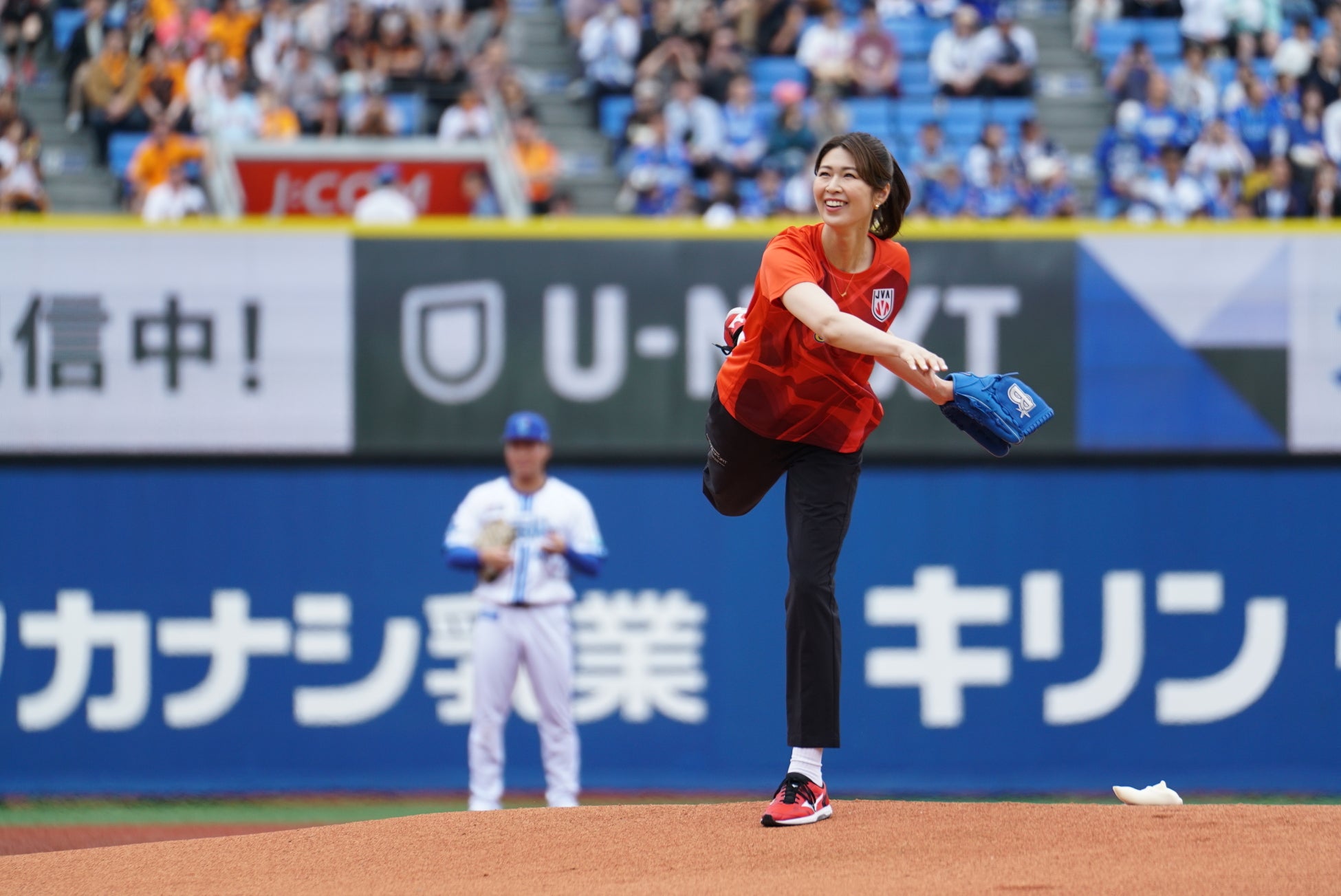 U-NEXT初の冠試合『スポーツ観るなら! U-NEXT DAY』で、元バレーボール日本代表の木村沙織が始球式を務めました。