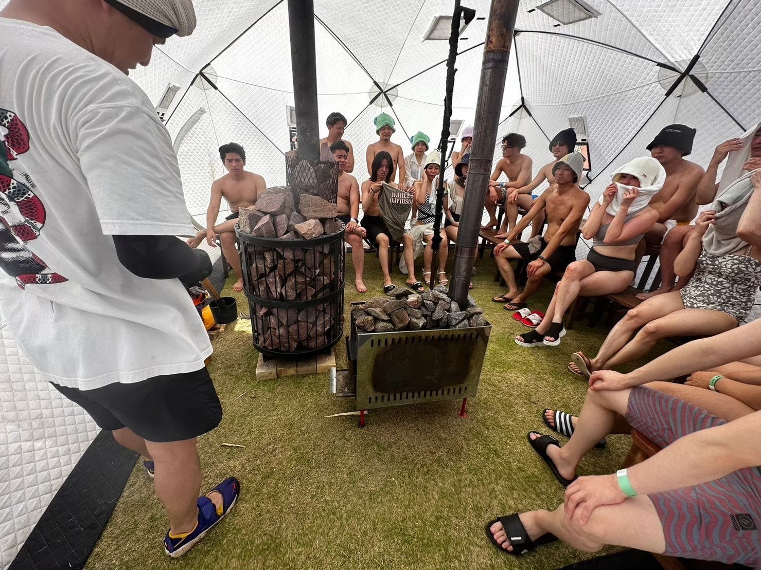 超大型テントサウナではアウフグースショーも開催され、人気のアウフギーサー八狐さんと鮭山未菜美さんが参加予定。