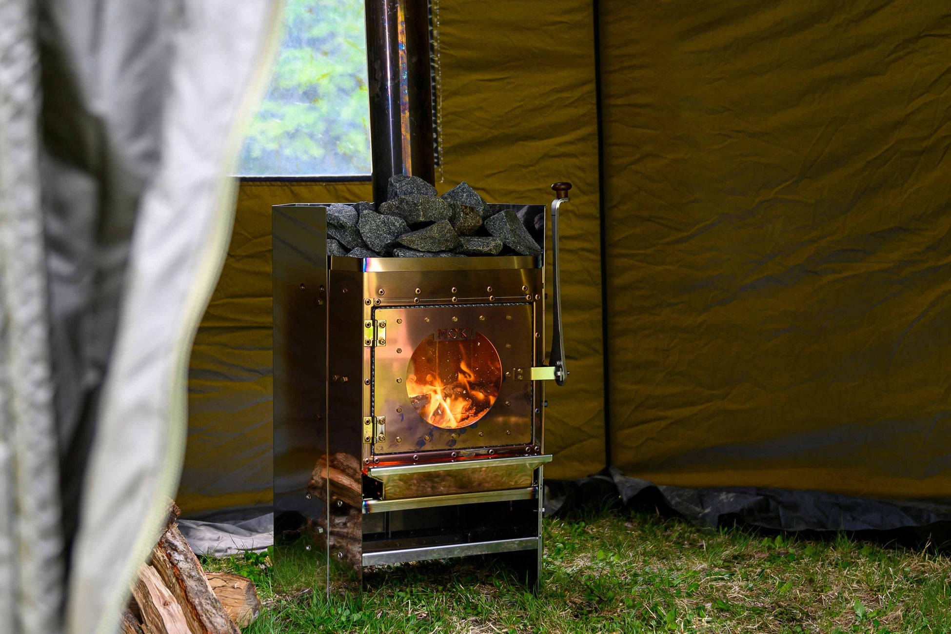 テントサウナメーカーやサウナストーブメーカーも展示。