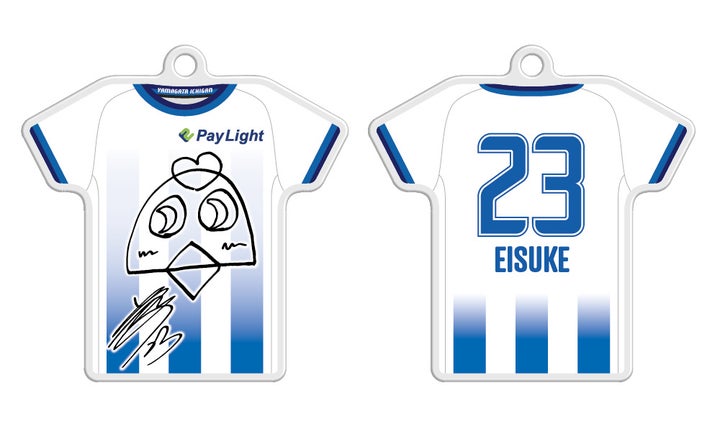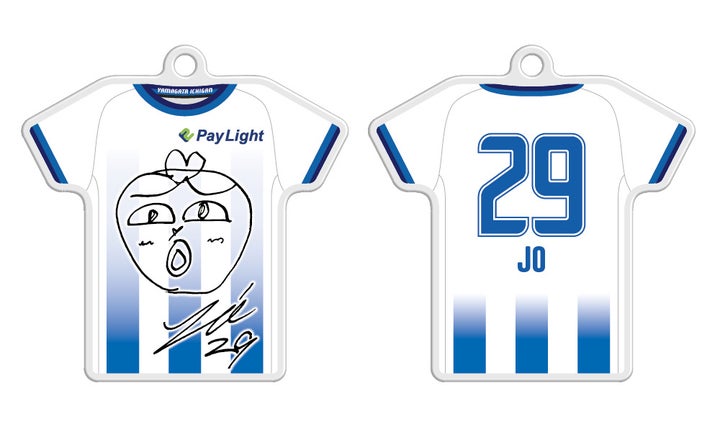 - モンテディオ山形選手がペイたんを描くチャレンジに参加