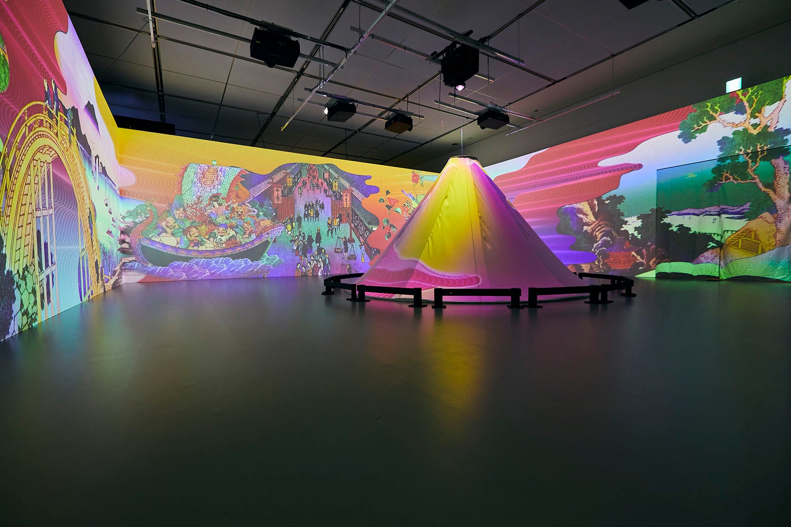 • 葛飾北斎や歌川国芳などの浮世絵師作品300点以上を3DCGアニメーションやプロジェクションマッピングで表現
