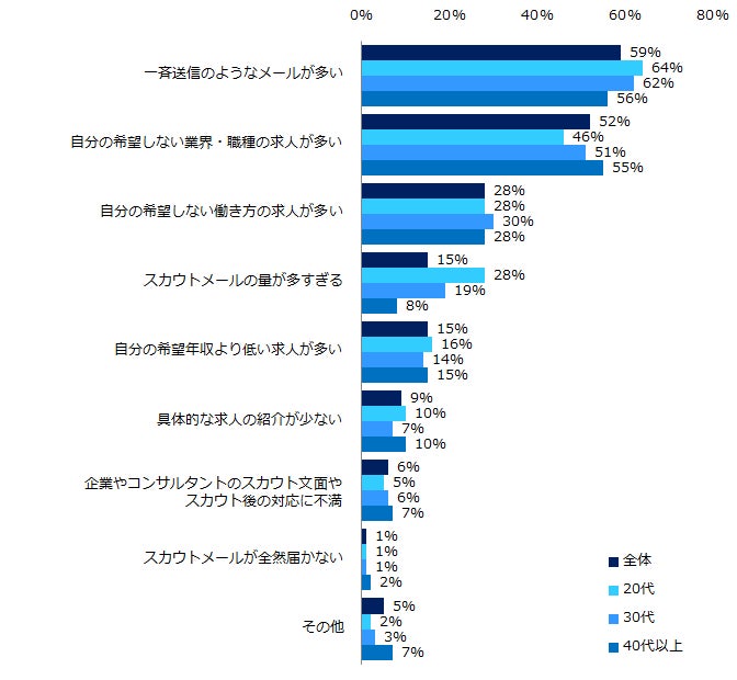 調査によると、81%の人がスカウトメールを受け取った経験があり、新しい企業や仕事に出会える良い点と一斉送信の多さが悪い点として指摘されました。