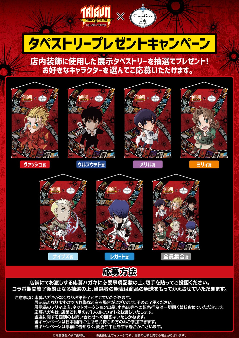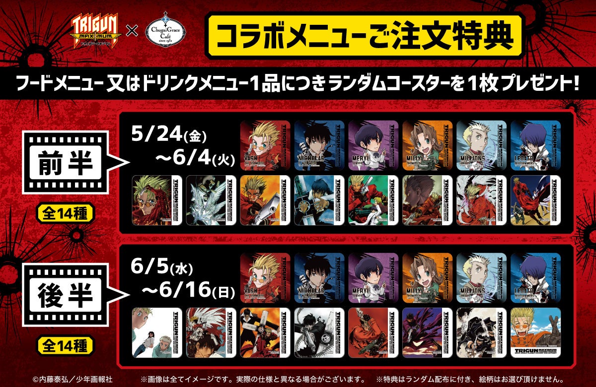 2024年5月24日から6月16日まで、渋谷モディ7Fで『トライガン・マキシマム』 × Chugai Grace Cafeコラボカフェが開催されます。