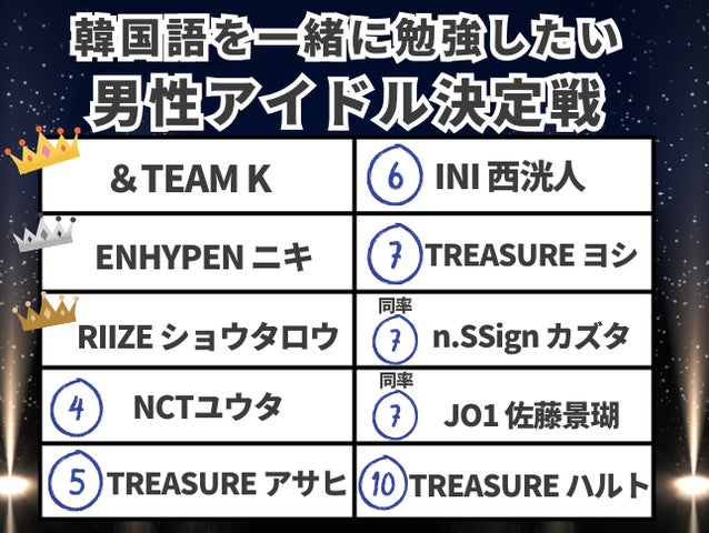 - 1位は&TEAM K、2位はENHYPENのニキ、3位はRIIZEのショウタロウ