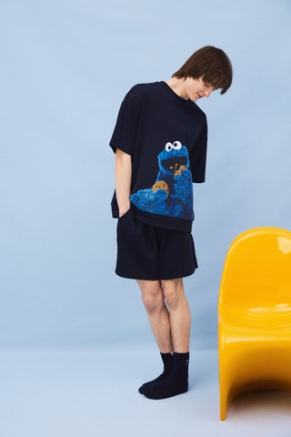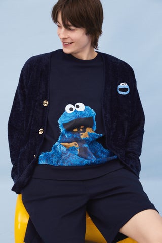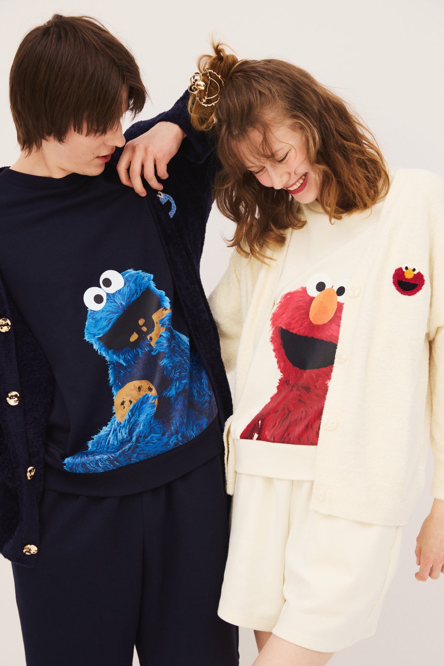 ルームウェアコレクションには、セサミストリートキャラクターがプリントされたスウェットセットやカーディガン、ストライプシャツなどがあります。
