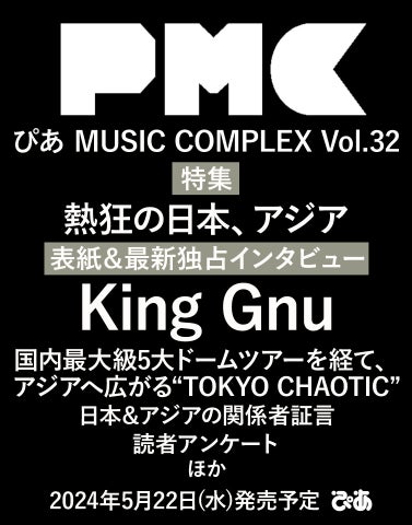 5月22日に発売される『ぴあMUSIC COMPLEX (PMC) Vol.32』では、King Gnuが表紙を飾ることが決定しました。