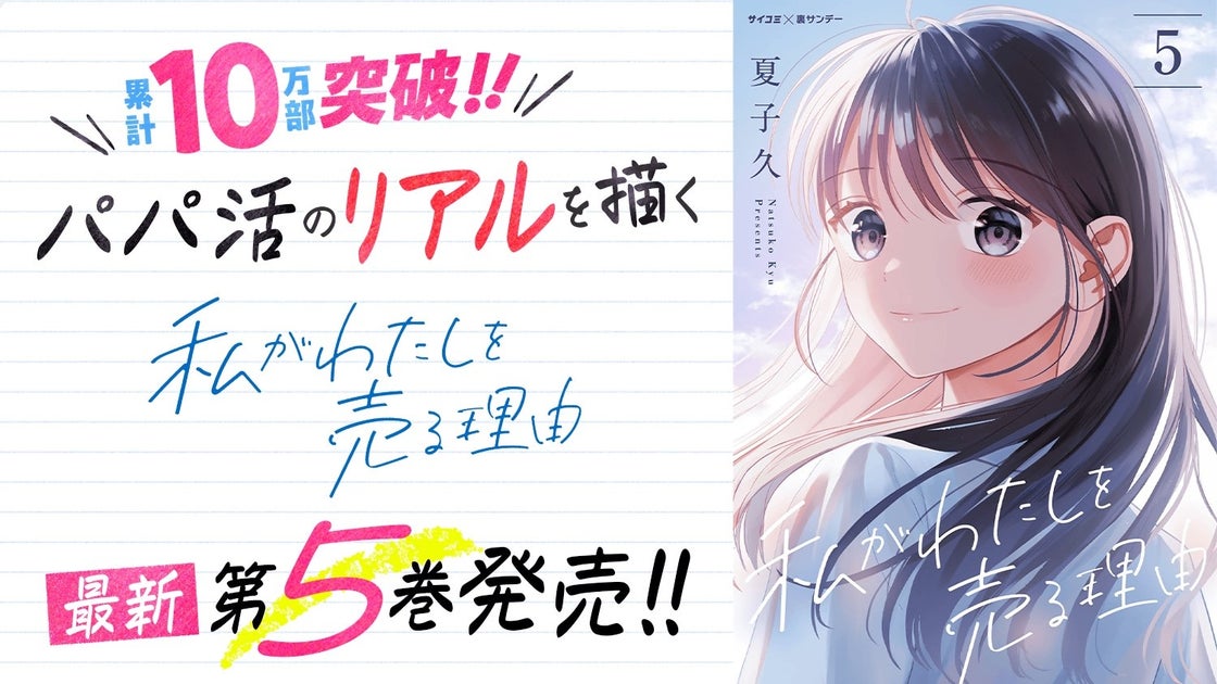 その中には、女子大生のパパ活を描いた『私がわたしを売る理由』5巻も含まれており、サイコミ内で1~3位を獲得し、10万部を突破しています。