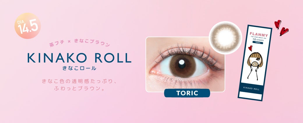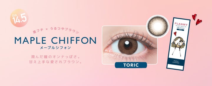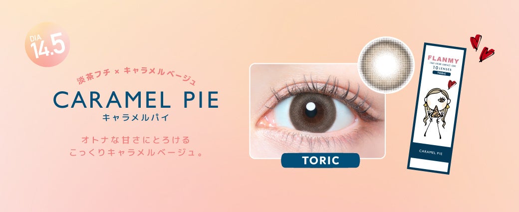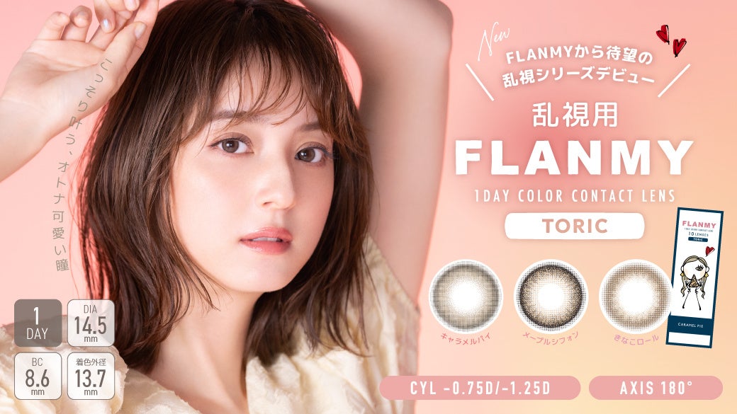 FLANMYシリーズの人気3色が乱視用カラコンとして登場!キャラメルパイ、メープルシフォン、きなこロールの魅力を存分に楽しめます。