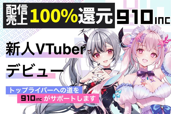 910inc専属の新人VTuberとしてヨルノルキと海星くららがデビューします。